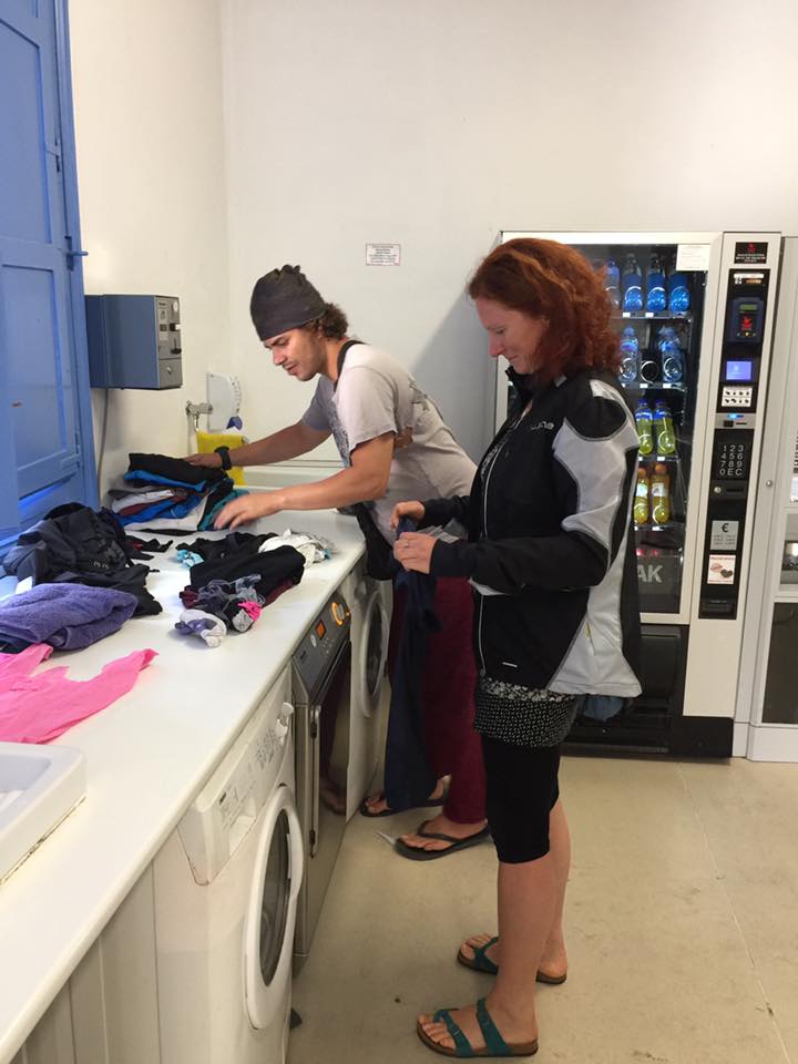 Un kā balva visam – vīna strūklaka. Nu, saki vēl, ka brīnumi nepastāv. No saujas iedzeru malciņu un noskaloju seju (ja šampanietī var kājas mazgāt, tad ar vīnu seju – pilnīgi noteikti. Nakšņojam Sonsol – mazs, jauks miests un alberģim ir savs kāju baseins. Mī un žē, kājas spiedz no sajūsmas. Varētu teikt – visa diena viena vienīga paradīze. Vakariņojām divu burvīgu kundžu sabiedrībā. Katerinai ar savu spridzinošo trakumu un Annai ar savu mieru, bezgala laipnajām acīm izdodās salauzt mūsu atturības ledu. Smejamies skaļi un skanīgi.