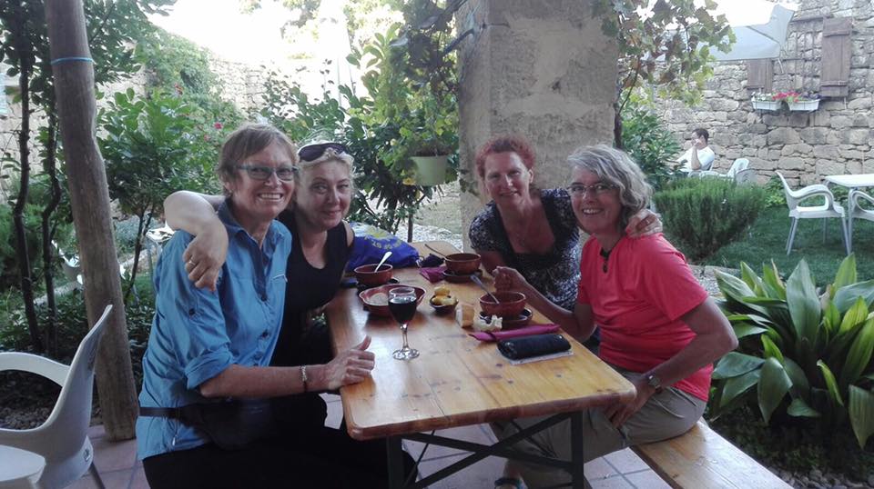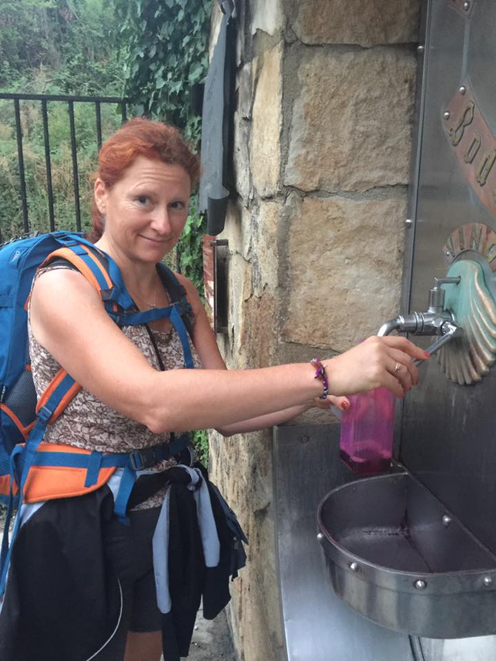 Un kā balva visam – vīna strūklaka. Nu, saki vēl, ka brīnumi nepastāv. No saujas iedzeru malciņu un noskaloju seju (ja šampanietī var kājas mazgāt, tad ar vīnu seju – pilnīgi noteikti. Nakšņojam Sonsol – mazs, jauks miests un alberģim ir savs kāju baseins. Mī un žē, kājas spiedz no sajūsmas. Varētu teikt – visa diena viena vienīga paradīze. Vakariņojām divu burvīgu kundžu sabiedrībā. Katerinai ar savu spridzinošo trakumu un Annai ar savu mieru, bezgala laipnajām acīm izdodās salauzt mūsu atturības ledu. Smejamies skaļi un skanīgi.