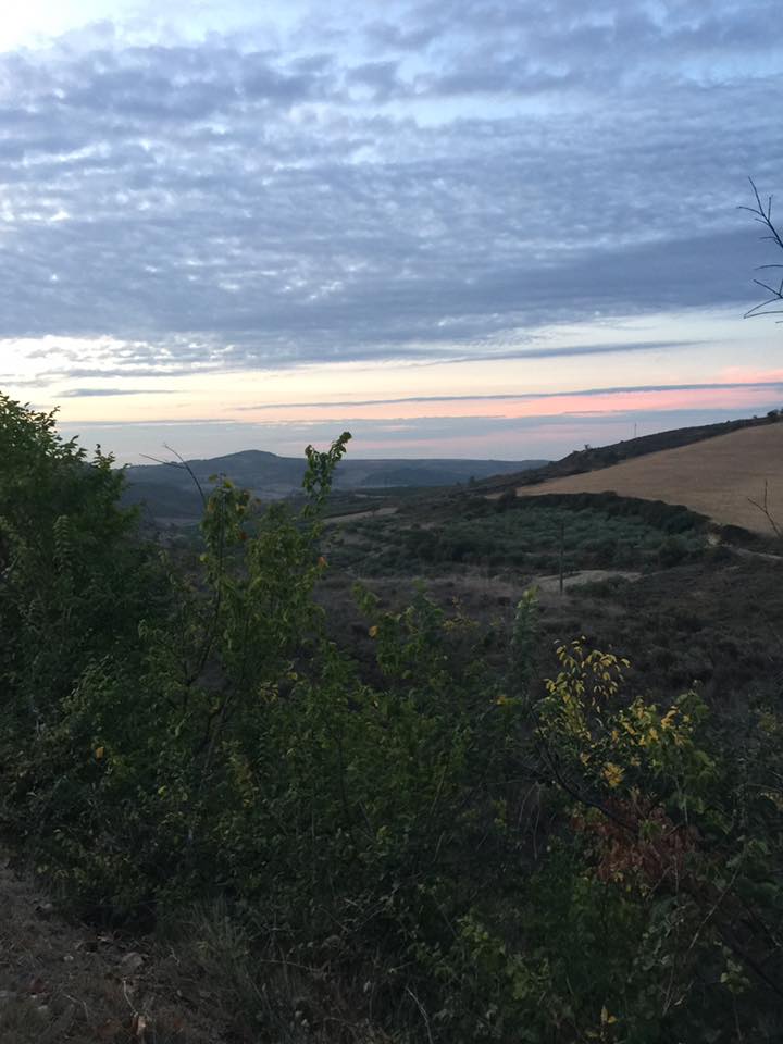 Manai kājai tas būtu par daudz sarežģīti, un mēs sadalamies. Izmēģinu gājienu pa šoseju. Ir labi un auto vadītāji jau pieraduši, ka katru dienu nebeidzamā plūsmā, visādi dīvainīši klimst pa ceļu. Arī tā ir sava veida misija – dzīvot Ceļa tuvumā, šķiet vietējie to tā arī uztver, ir atsaucīgi , laipni un galu beigās , ceļotāji dod pietiekami iespaidīgu ieguldījumu valsts budžetā. Ar katru dienu vairāk un vairāk iemīlos Spānijā un tās iedzīvotājos . Agrāk nekad Spānija nav mani uzrunājusi , ir kaut kādi vispār zināmie fakti , personāži, bet tas ir ļoti virspusēji , pat kauns paliek . Tikšu mājās , ķeršos pie vēstures pētīšanas. Bet pagaidām ap mani zili- zaļie vīnogu lauki, zaļās ķirzakas, kalni un labības lauki , kas no kalna izskatās kā raksti mūsu pašu tautas tērpa brunčos . Jā, tā ir mana atzīšanās mīlestībā šai valstij , cilvēkiem , kas savu roku pielikuši , lai taptu šī taku , uztur to , liek zīmes, vadā , baro, steidz palīgā gājējiem. Rīt būs lielo piedzīvojumu diena !