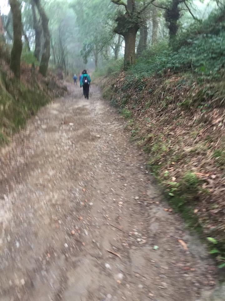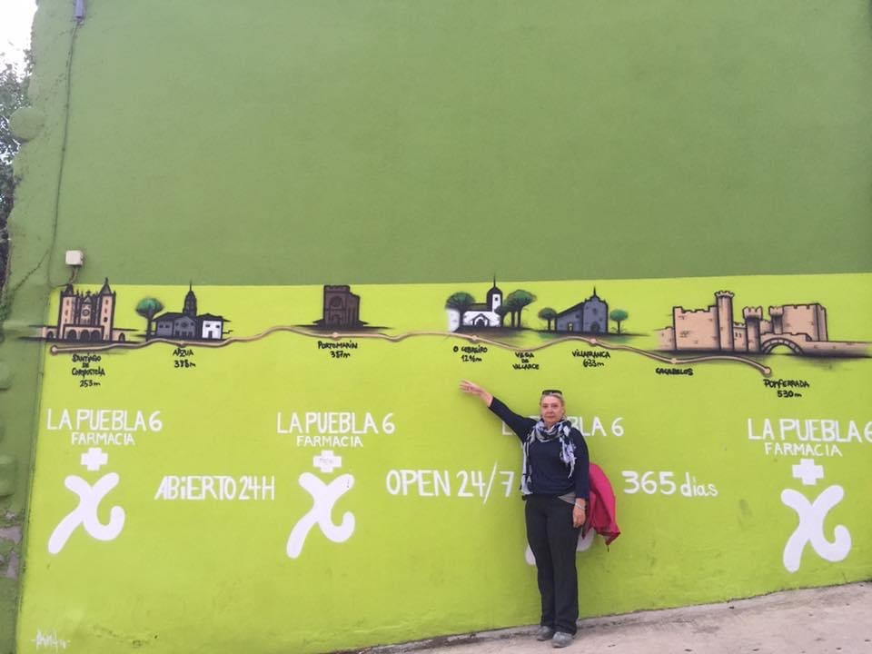 Čertpadsmitā gājiena diena . ,, Es varu staigāt ,, Pēc vakardienas lietiem, aukstuma un vispār – pē, šodiena ir īsta debesmanna. Ir skaidrs, ka biezajos apavos kājas neieaut, nācās iegādāties sandales, zole gan paplāna, pēdas jutīs katru akmentiņu, bet pirksti būs brīvībā un lielais caurums uz papēža arī. Tuvojas 100 km atzīme un soļotāju paliek aizvien vairāk, jo oficiālu sertifikātu par noieto ceļu dod jau no noietiem pēdējiem 100 km. Jā, ir daudz smuki sapucētu, trokšņainu ļautiņu, kuriem 5 dienas ceļā ir tāds feins tusiņš. Forši, atsvaidzina ilggājēju sejas.