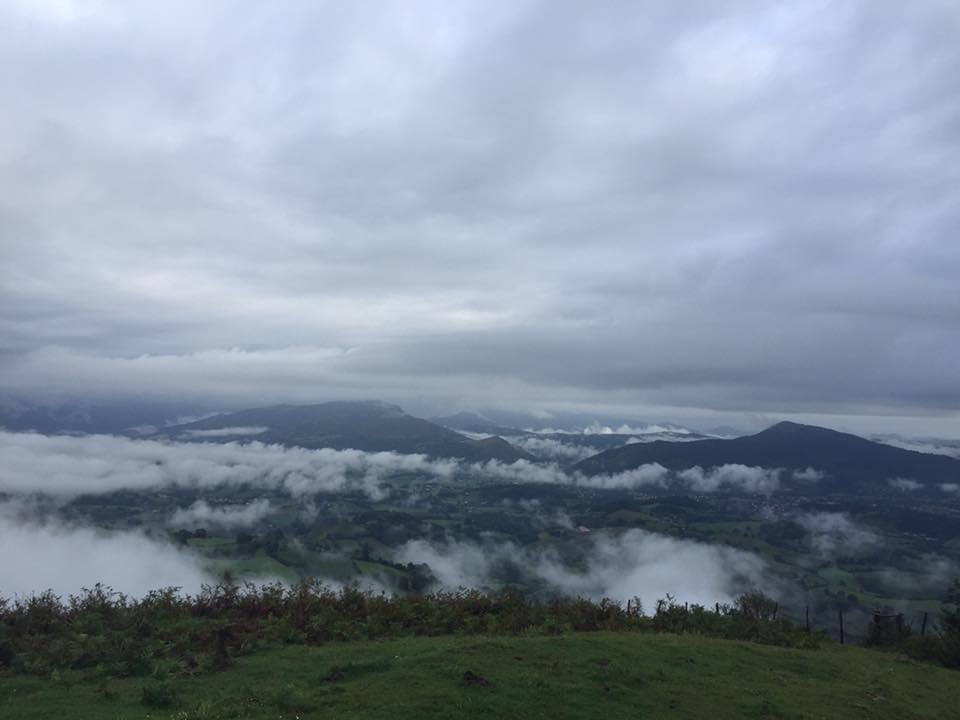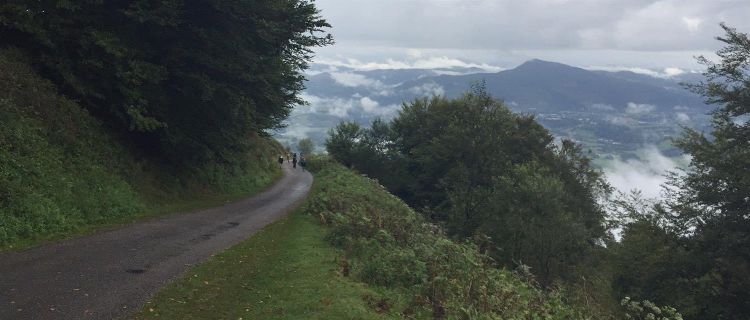 Trešā gājiena diena ! Pat nezinu kā šo dienu nosaukt : ,, Nošaujiet mani ,, vai ,, Kad robežas brūk ,, Aiz sāpēm nakts praktiski negulēta , pretsāpju zāles īsti nedarbojās , abas lauztās potītes kauc kā sirēnas . Vienīgais , mazais prieciņš, ka arī Lailas miega pele aizķērusies kādā krūmājā , tātad , būsim vienādi jocīgas . Rīts sākas ar skarbo patiesību , ka vienpatība šajā ceļā ir reta un nesasniedzama greznība , un pat visintīmākie procesi ir visiem dzirdami , jo labierīcības ir kopīgas abiem dzimumiem un vīrieši šeit ir pārsvarā . Nu , ko . Arī tam tiksim pāri . No Alberģa izejam vēl tumsiņā , debesis viegli nomākušās un no kalnu ielejām ceļas biezi , pienbalti miglas vāli, brīžiem tā ir tik bieza, ka neredzu priekšā ejošo . Saasinām visas maņas un ,, čuju ,, , lai nenoklīstu no ceļa , pietiks jau ar pirmās dienas jautrībām . Kādā brīdī ceļš pazūd , visapkārt zīmes ar aizliegumu gājējiem iet , staipam kaklus kā žirafes , mēģinot saskatīt kādu spraugu . Ir jau arii , bet tāda šaura ar garu biezu zāli apaugusi , jūtamies piederīgas ceļam un izveidojam no akmeņiem norādījuma bultu . Nebeidzu priecāties par dabas skaistumu , laipnajiem cilvēkiem un suņiem